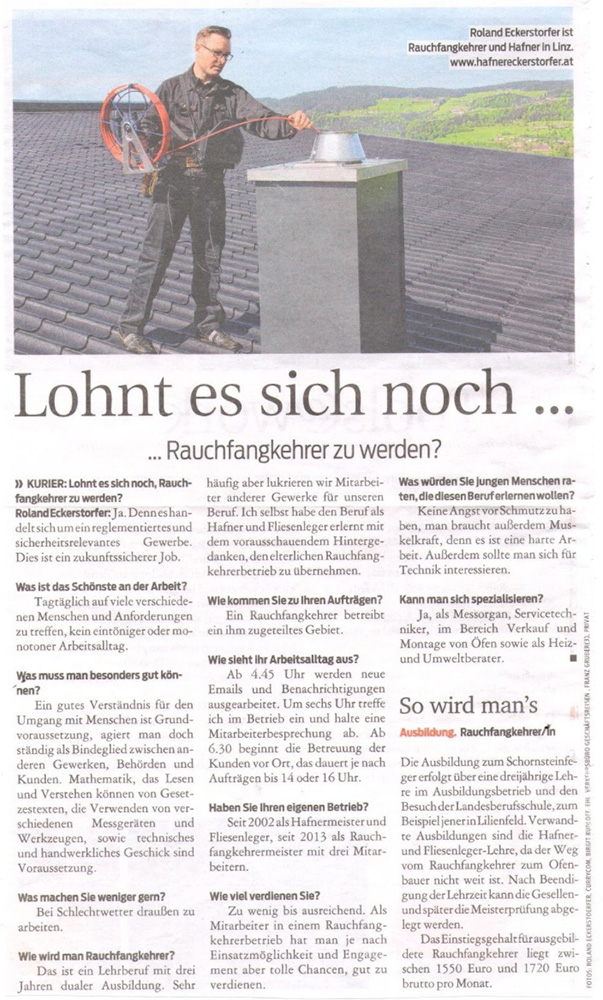 Dass die Wiener Bauordnung seit vier Jahren erlaubt, Neubauten ohne Notkamine zu errichten, sieht Christian Leiner, Innungsmeister der Wiener Rauchfangkehrer, kritisch. Nicht nur, weil damit die Arbeit seiner Branche- das Überprüfen und Reinigen der Kamine – obsolet wird. Den Bewohnern nehme man damit auch die Möglichkeit für Heizalternativen wie Kachelofen oder offenen Kamin, die ja auch Behaglichkeit schaffen, sagt Leiner. Und er sorgt sich um den vorbeugenden Brandschutz. „Wir kommen in solche Häuser gar nicht mehr hinein. Wer kontrolliert dort aber die Einhaltung der Brandschutzvorschriften?“ Derzeit schaue seine Zunft bei den Kehrterminen in den Wohnhäusern auch darauf, ob die feuerpolizeilichen Vorschriften eingehalten werden. Wo kein Kamin ist, wird nicht gekehrt, und damit entfällt auch diese Kontrolle. Leiner kann sich deshalb verpflichtende Brandschutzbegehungen durch den Rauchfangkehrer vorstellen – unabhängig vom Vorhandensein eines Kamins. …