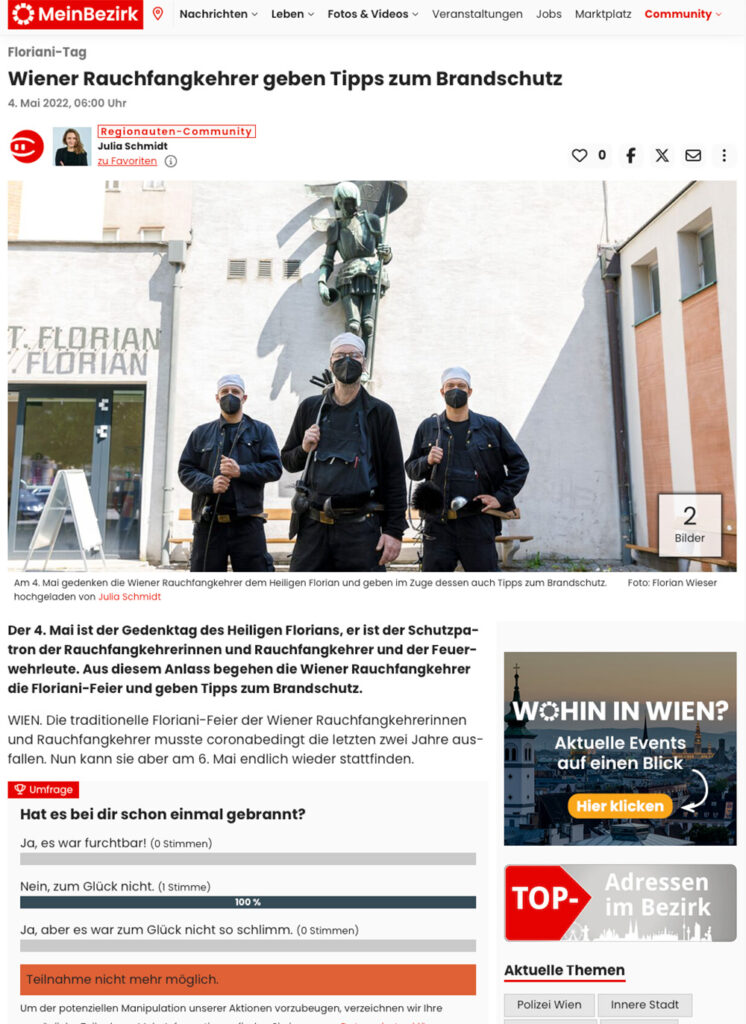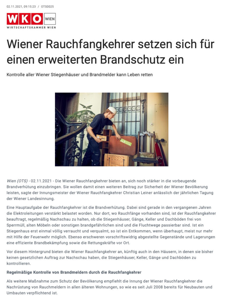 Der Innungsmeister der Wiener Rauchfangkehrer, Christian Leiner, will das Gefahrenbewusstsein für Brände steigern und wünscht sich regelmäßige Brandschutz Begehungen in allen Bauten.